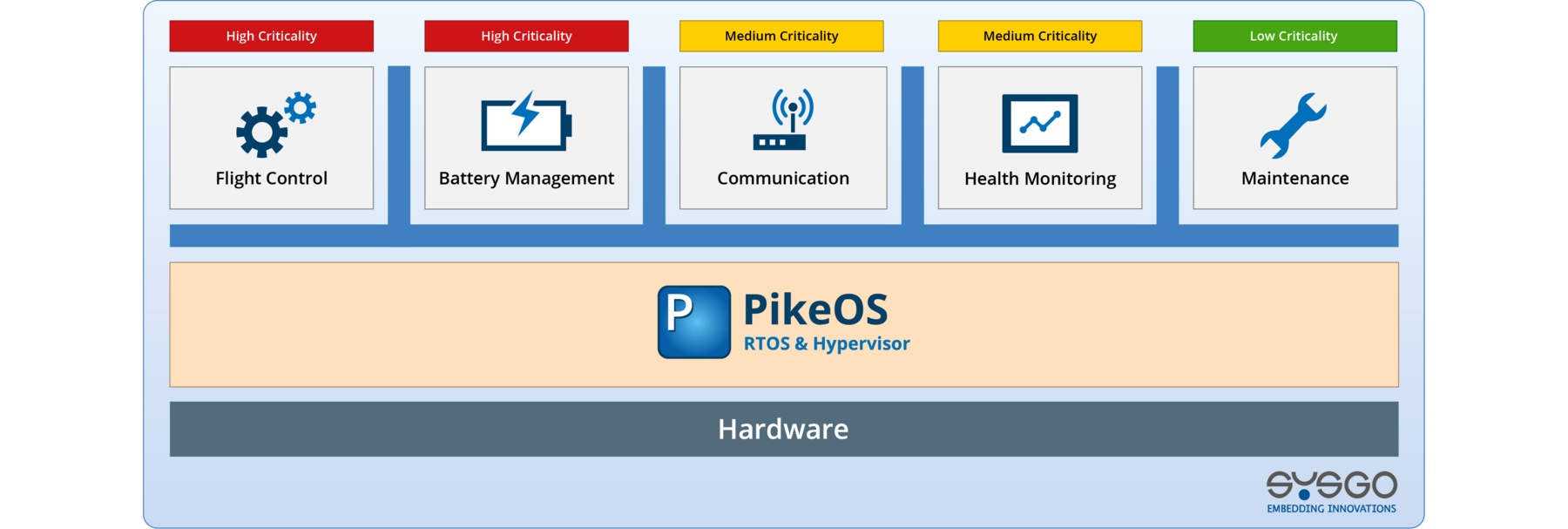 PikeOS enables robust separation of critical and non-critical functions, ensuring fault containment and supporting mixed-criticality systems