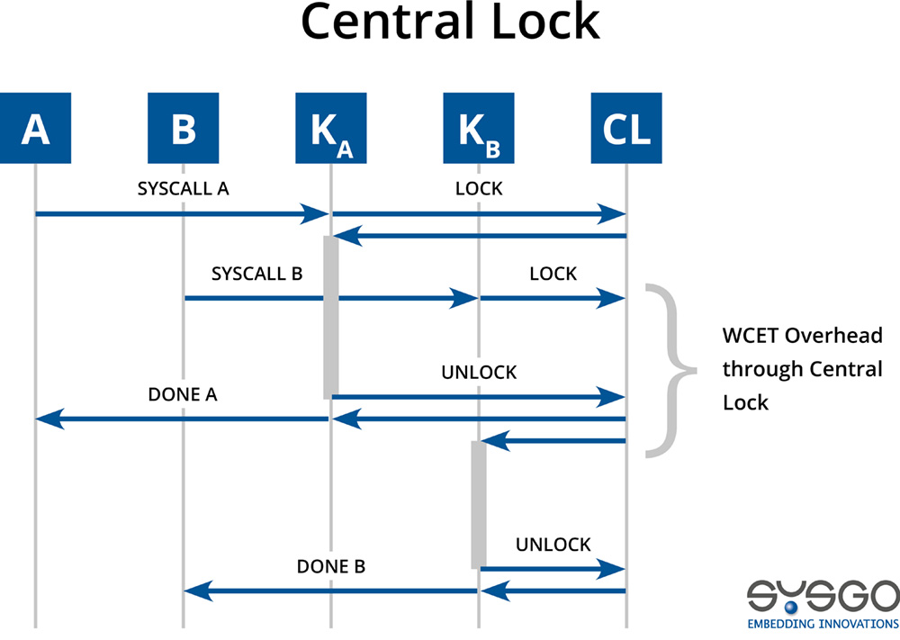 In addition to the reduced WCET, dispensing with the central spinlock has resulted in improved performance because there is no longer any need to dedicate any processor time to active waiting and the application is therefore available directly.