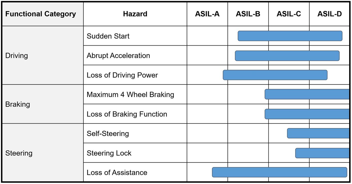 Figure 1: Different ASILs are required depending on the function; D is the most stringent level