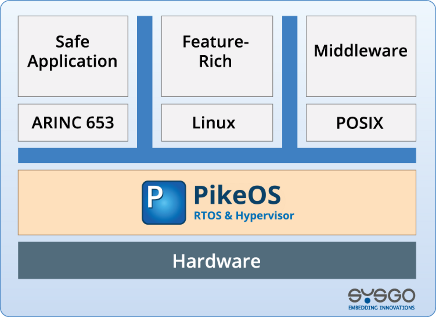 PikeOS ensures that Safety-critical, Security-critical, and non-critical components are strictly isolated. Partitions enforce strong temporal and spatial separation, enabling certification to strict standards like DO-178C (Avionics) or ISO 26262 (Automotive).